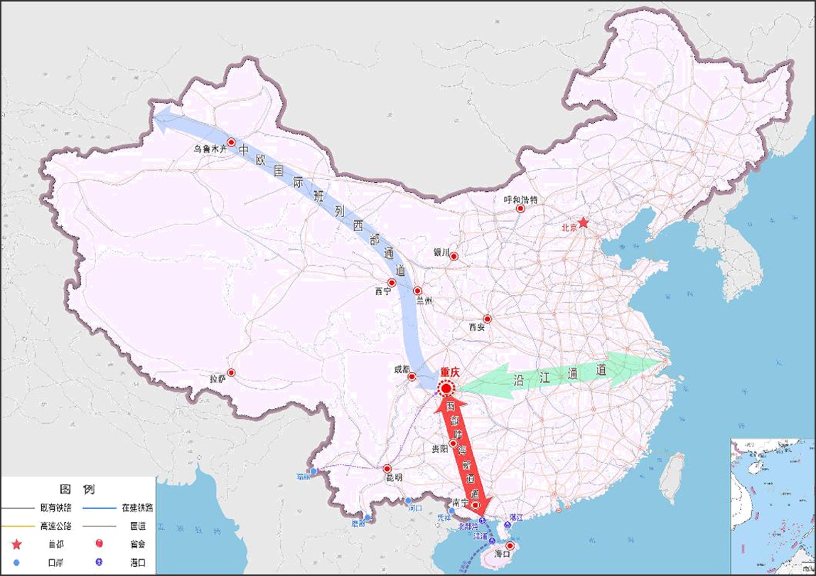 西部陸海新通道位于我們西部地區(qū)腹地,北街絲綢之路經(jīng)濟(jì)帶,南連21世紀(jì)海上絲綢之路,協(xié)同銜接長江經(jīng)濟(jì)帶,在區(qū)域協(xié)調(diào)發(fā)展格局中具有重要戰(zhàn)略地位。