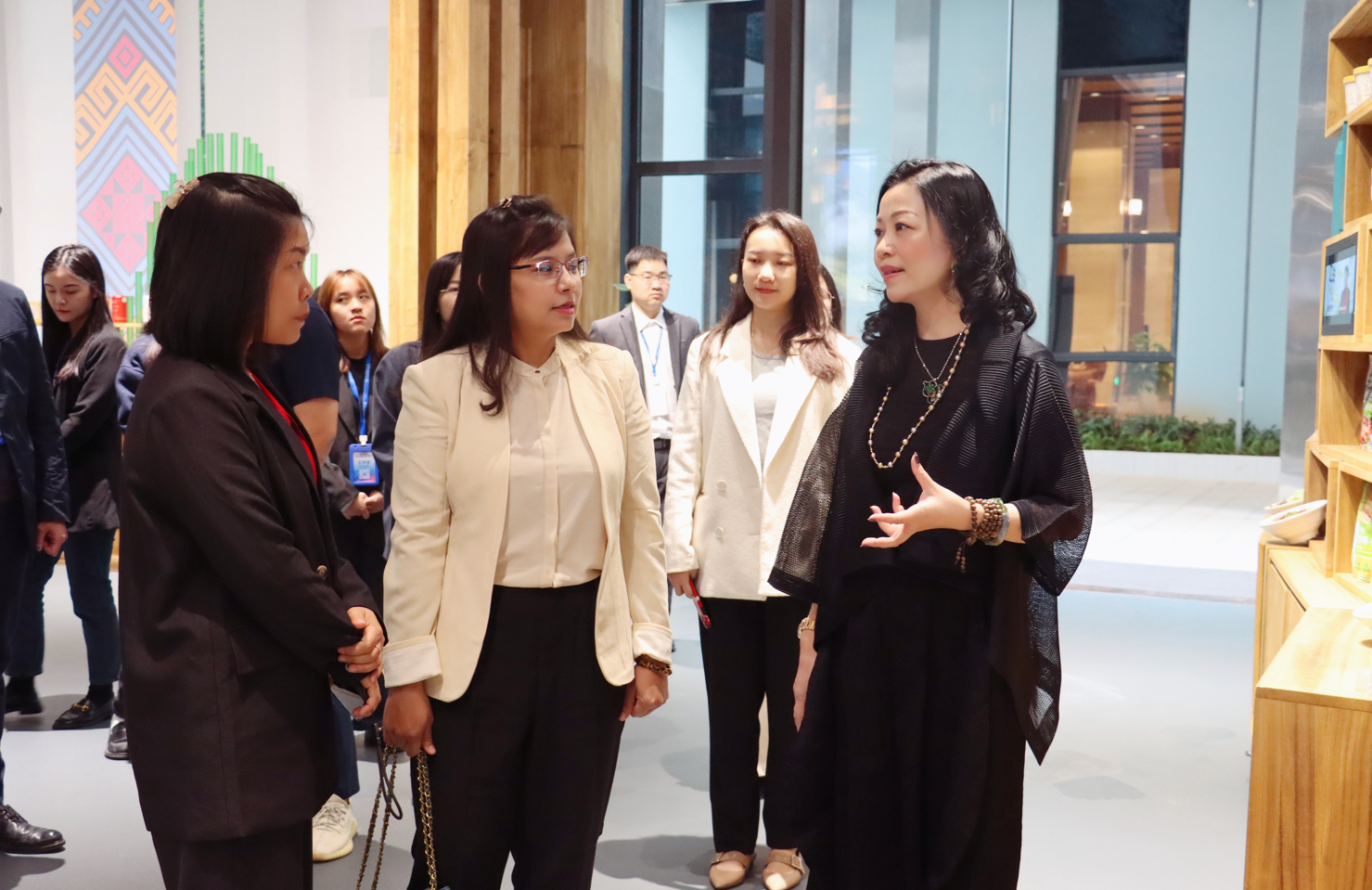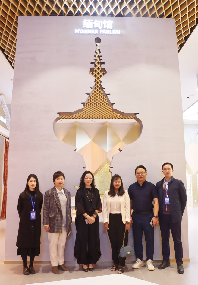 在參觀匯聚中心17個國家及地方特色展館過程中,趙海燕董事長介紹了匯聚中心展館如何通過人文設(shè)計理念烘托出各國當(dāng)?shù)靥厣a(chǎn)品,以沉浸式的獨特商品貿(mào)易體驗促進交易。作為匯聚中心精心打造的國家主題展館,緬甸館以該國傳統(tǒng)特色文化為基調(diào),巧妙融合本地風(fēng)土人情元素打造的“金色緬甸”效果,贏得了高凱玨參贊的認可。她表示緬甸館不僅設(shè)計別出心裁,而且能夠在一定的空間里盡可能地將緬甸多元文化與特色產(chǎn)品展示出來,可見項目策劃人所費的心思不一般。
