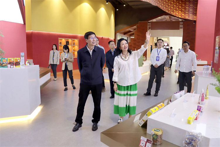 王雷書記可以說是匯聚中心的“老朋友”了。在他任職中國(guó)—東盟博覽會(huì)秘書處秘書長(zhǎng)期間,匯聚中心自概念提出再到落地建設(shè),他是其中的見證者之一。在參觀匯聚中心多個(gè)主題展館的過程中,趙海燕董事長(zhǎng)詳細(xì)介紹了項(xiàng)目如何通過線上數(shù)字化平臺(tái)+線下展館沉浸式商貿(mào)體驗(yàn)相結(jié)合的方式,以“物”引“流”、以“物”促“流”,幫助商家實(shí)現(xiàn)更好的發(fā)展。