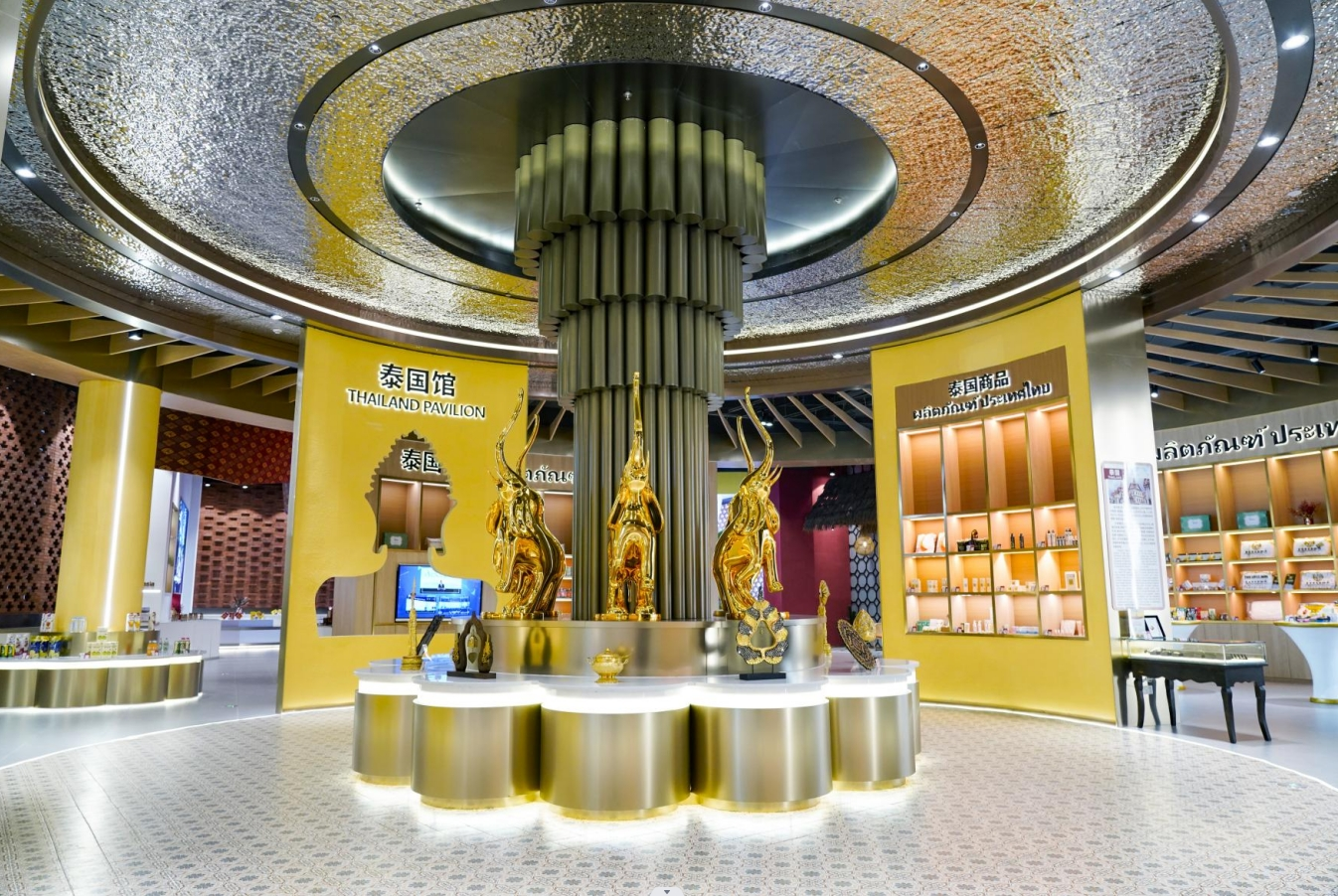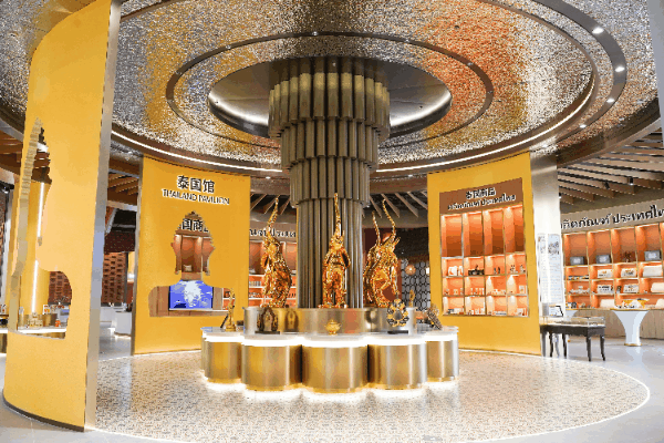 泰國素有“千佛之國”“白象王國”等美稱,匯聚中心泰國館的設計就巧妙融入了經(jīng)典的蓮花、佛像、大象等元素。