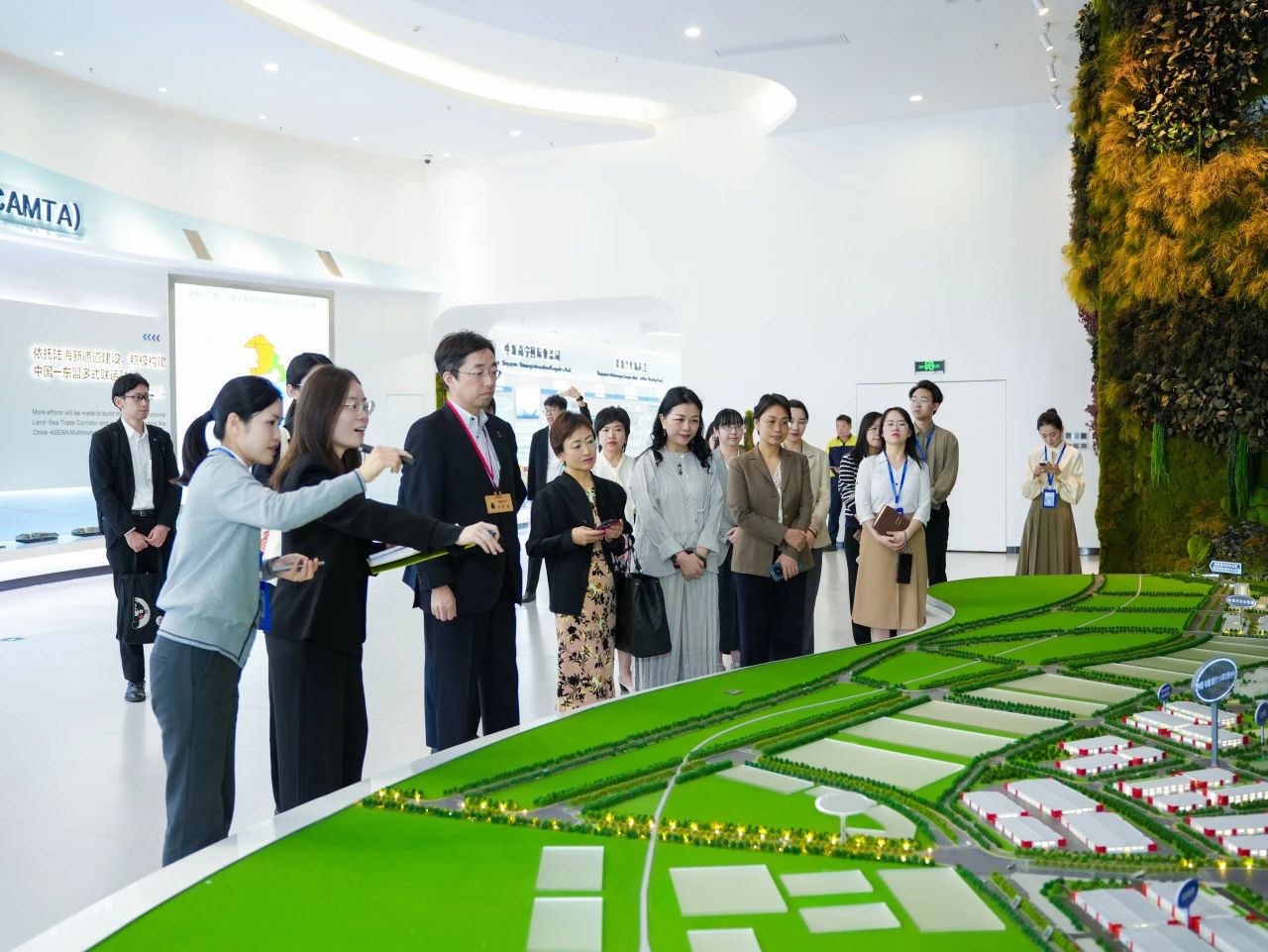 在中新物流園展廳,代表團(tuán)詳細(xì)了解園區(qū)的整體規(guī)劃和發(fā)展情況,對國際陸海貿(mào)易新通道的戰(zhàn)略價值以及廣西作為關(guān)鍵節(jié)點的樞紐作用有了更深刻的理解。代表團(tuán)對于園區(qū)選址于廣西南寧,既把握了中國西部大開發(fā)的戰(zhàn)略機(jī)遇,又充分發(fā)揮了廣西面向東盟的區(qū)位優(yōu)勢,實現(xiàn)多方共贏發(fā)展格局表示了贊賞。