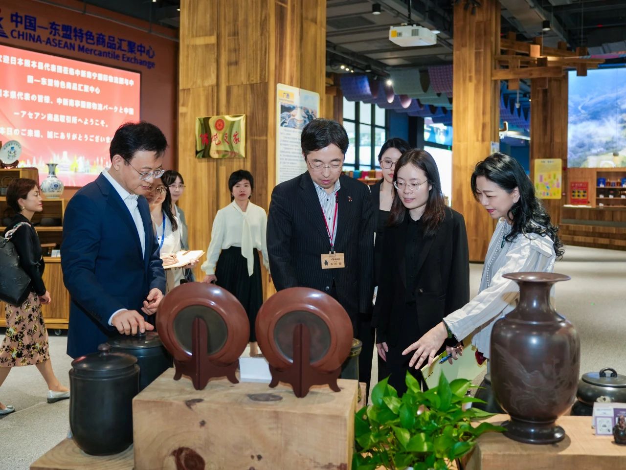 在匯聚中心,代表團(tuán)通過沉浸式參觀、聽取講解和互動交流,詳細(xì)了解了項目的運營模式和功能定位,對其融合了異國風(fēng)情的展館設(shè)計,以及館內(nèi)琳瑯滿目的商品表現(xiàn)出濃厚興致。代表團(tuán)成員表示,匯聚中心作為中國與東盟、RCEP其他區(qū)域國家乃至“一帶一路”沿線重要國家經(jīng)貿(mào)往來線上線下一站式首選平臺,各展館特色商品之豐富,文化元素之博大,異域風(fēng)情之獨特,令人嘆為觀止。