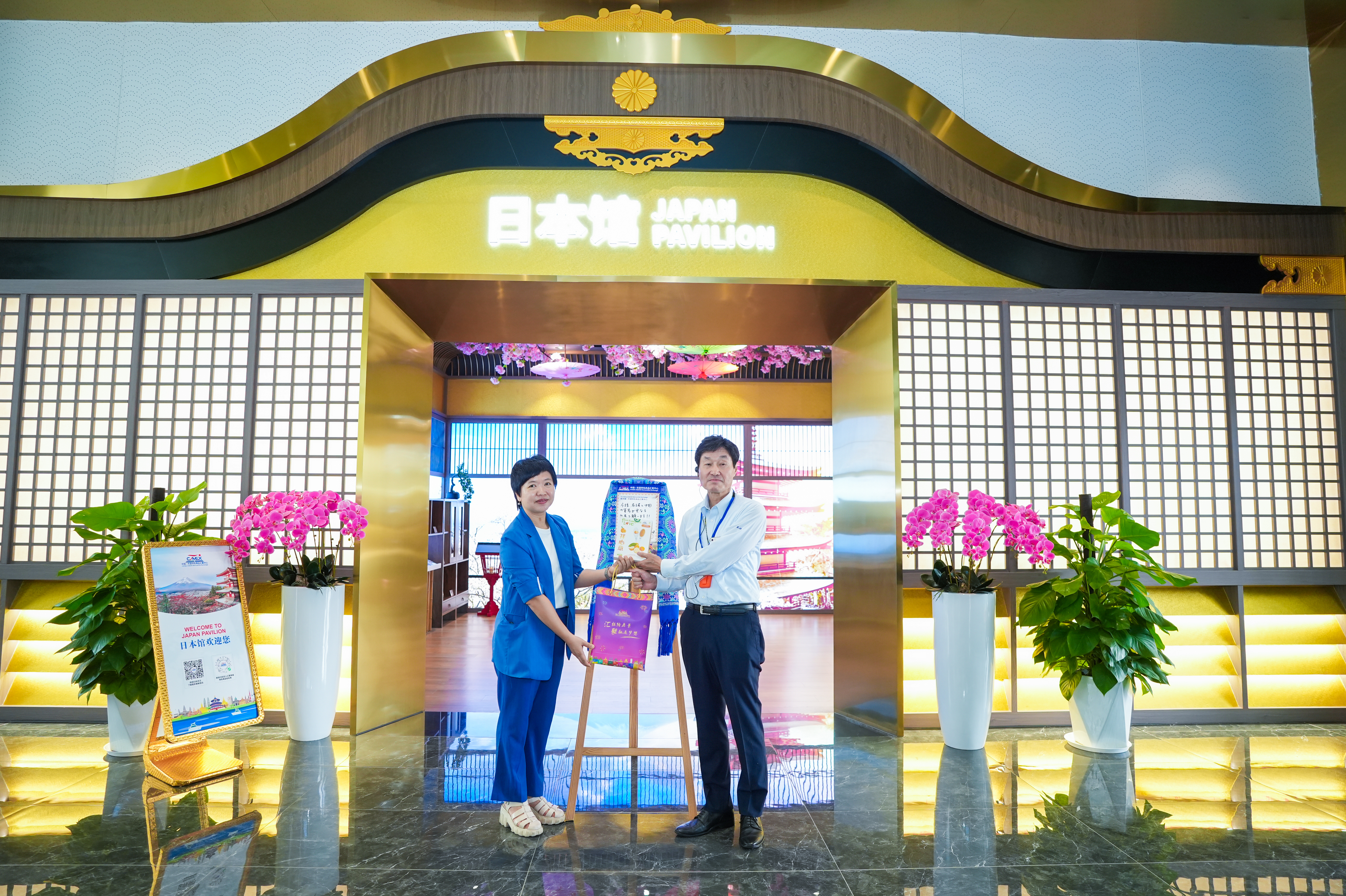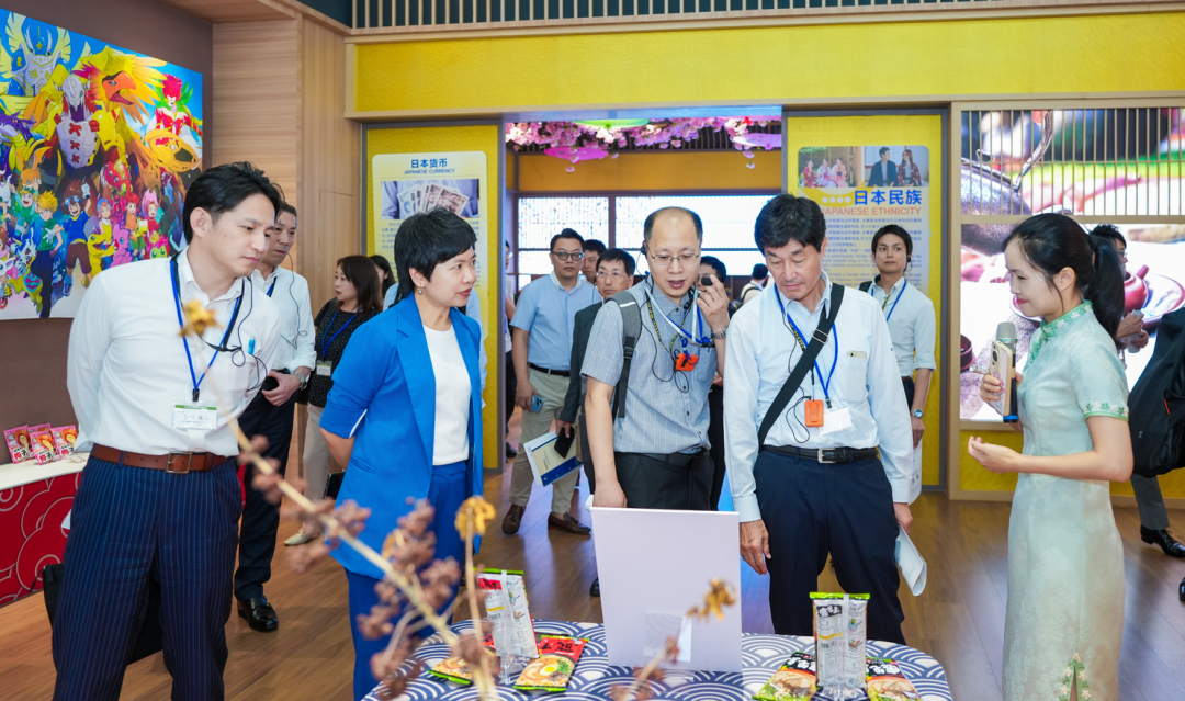 來(lái)到日本館,濃郁的日式風(fēng)情瞬間吸引了訪華團(tuán)的注意。作為匯聚中心的特色主題館之一,日本館以"春夏秋冬"為設(shè)計(jì)主線,讓訪客在有限的空間內(nèi)沉浸式感受日本文化的獨(dú)特魅力。大家相繼用鏡頭記錄下獨(dú)具特色的場(chǎng)景布置,并對(duì)館內(nèi)陳列的各類特色商品表現(xiàn)出極大興趣,不時(shí)駐足了解相關(guān)內(nèi)容。