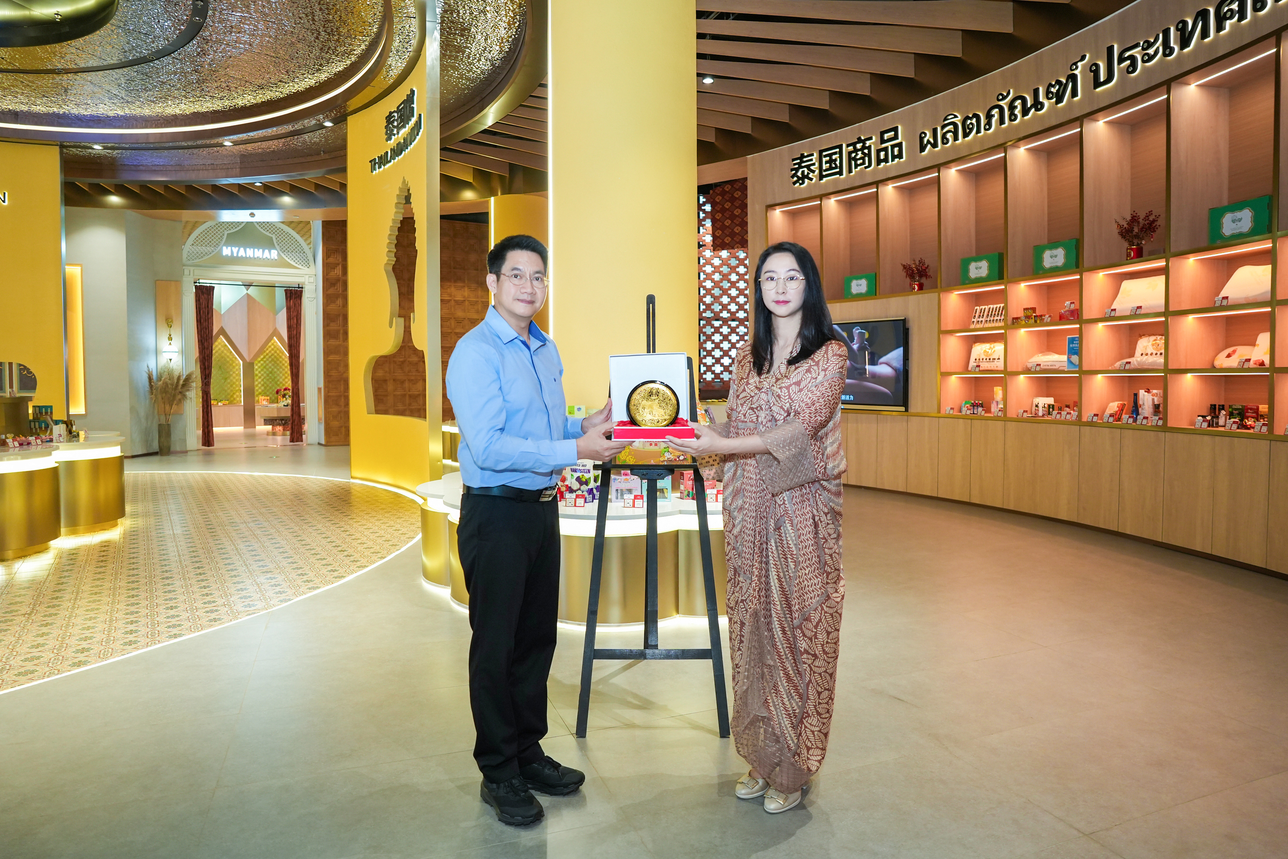 2025年8月15日,泰國清邁府辦公廳主任努帕拉猜率泰北經(jīng)濟領(lǐng)域公務(wù)員代表團一行到中新南寧國際物流園(簡稱“中新物流園”)、中國—東盟特色商品匯聚中心(簡稱“匯聚中心”)參觀考察。中國—東盟特色商品匯聚中心副總經(jīng)理李丹熱情接待了代表團。