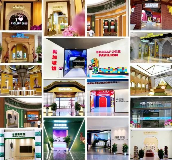 目前,匯聚中心線下17個(gè)風(fēng)格迥異的主題展館已經(jīng)建設(shè)完成,其中包括10個(gè)東盟國家主題館、4個(gè)RCEP其他區(qū)域國家主題館、“一帶一路”國家主題館——巴基斯坦館、世界清真商貿(mào)中心以及中國廣西館。各主題展館通過提取各國特色建筑景觀和人文風(fēng)俗等經(jīng)典元素,巧妙融入沉浸式的商貿(mào)體驗(yàn)中。